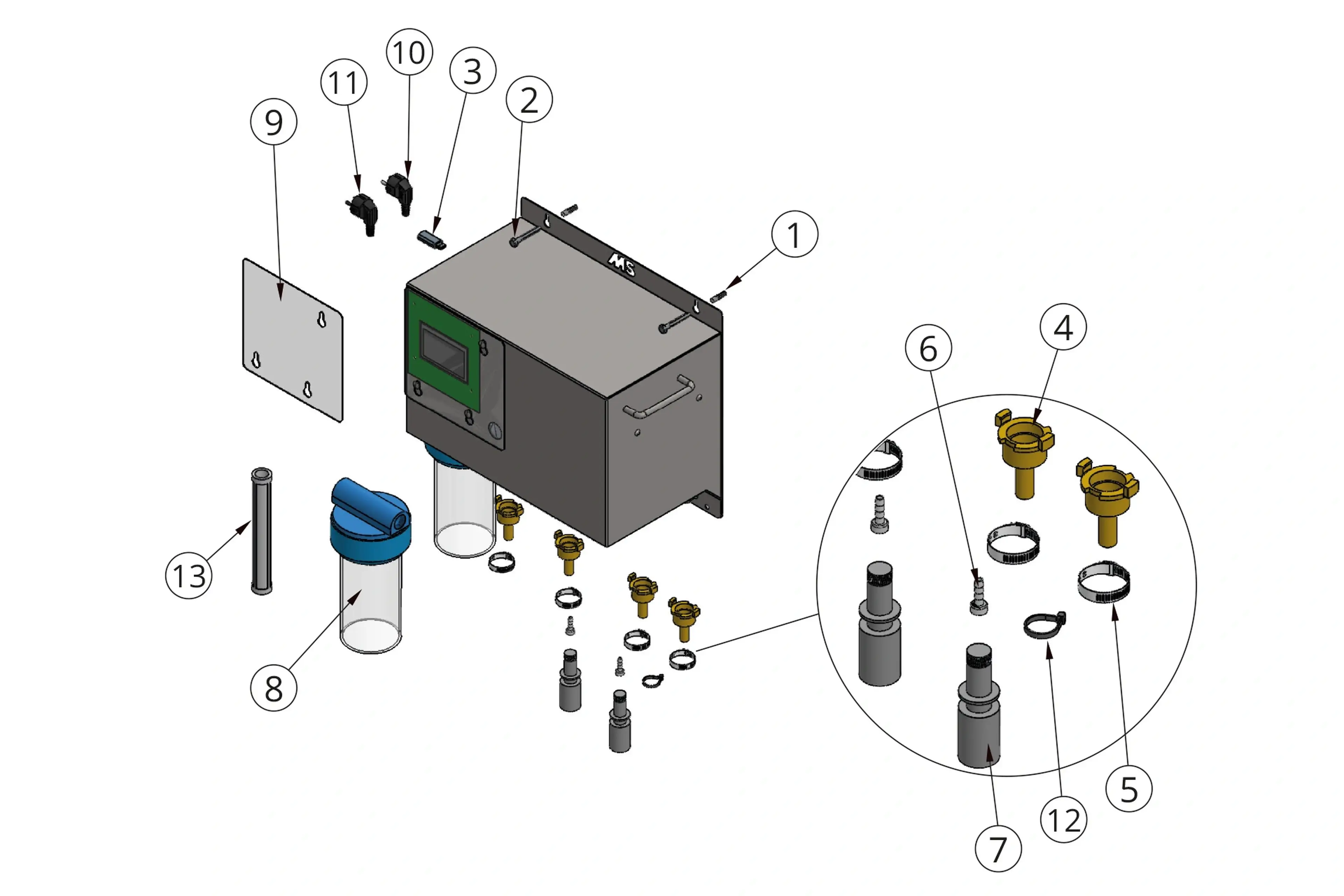 Installa i sensori sui tubi di aspirazione per evitare che la pompa funzioni a vuoto quando i contenitori sono quasi vuoti.